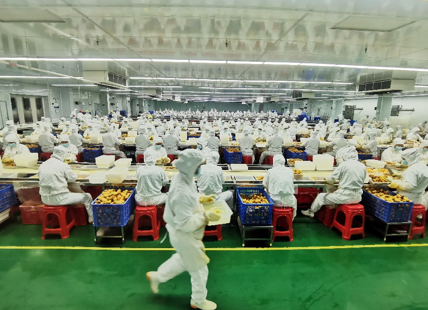 深圳通过粤桂扶贫资金在对口帮扶的广西百色市田阳区建设广西果天下食品有限公司,图为企业生产车间(2020年7月14日摄)。