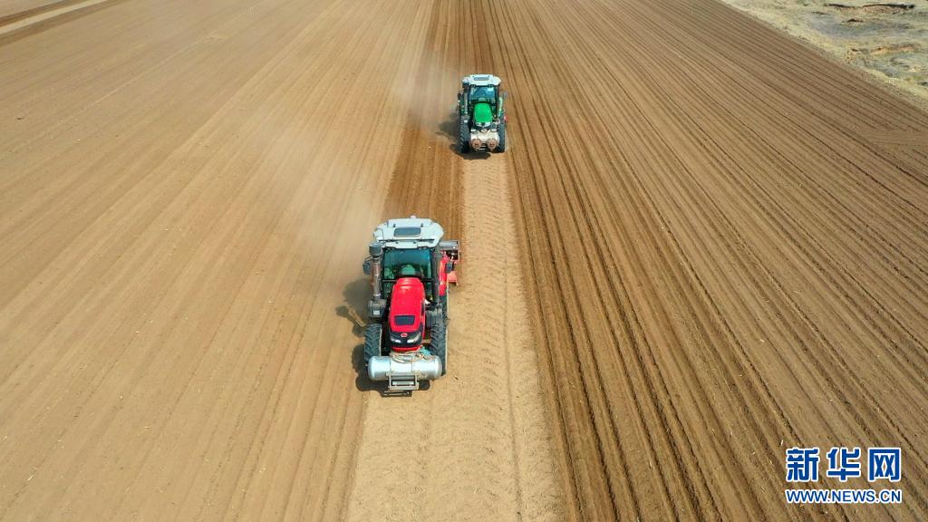 这台无人驾驶播种机由内蒙古禾兴农牧业有限责任公司引进,通过应用北斗卫星定位系统进行科学精准播种。公司总经理白恩泽说,这种精准播种方式可以使每亩地出苗率提高10%、土地利用率提高10%、增产15%以上。