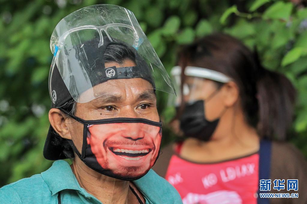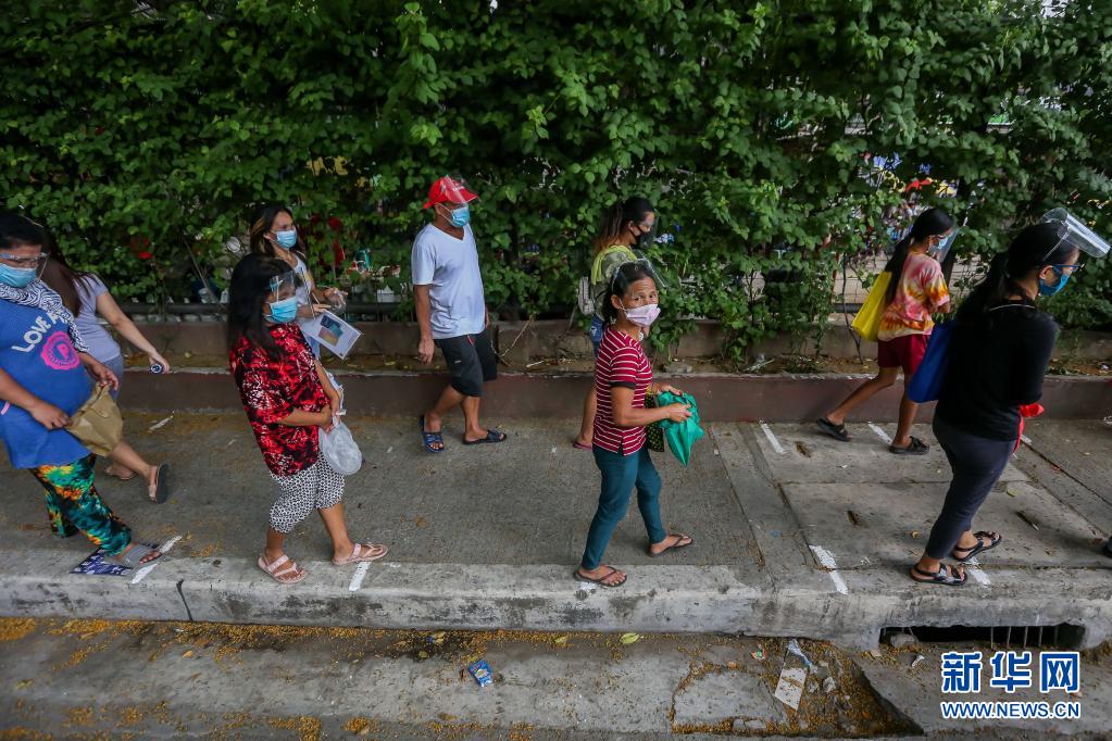 4月26日,戴口罩的人们在菲律宾马尼拉排队等待领取物资。新华社发(乌马利摄)