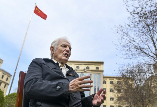 李忆祖老人在新疆乌鲁木齐市接受采访时留影(4月21日摄)。本报记者王菲摄