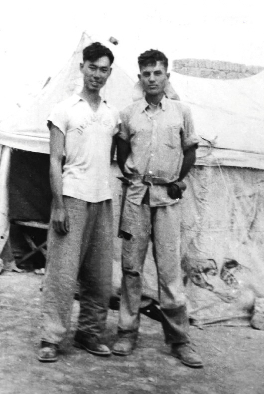 李忆祖(右)1962年在新疆鄯善底湖考察。(受访对象供图)