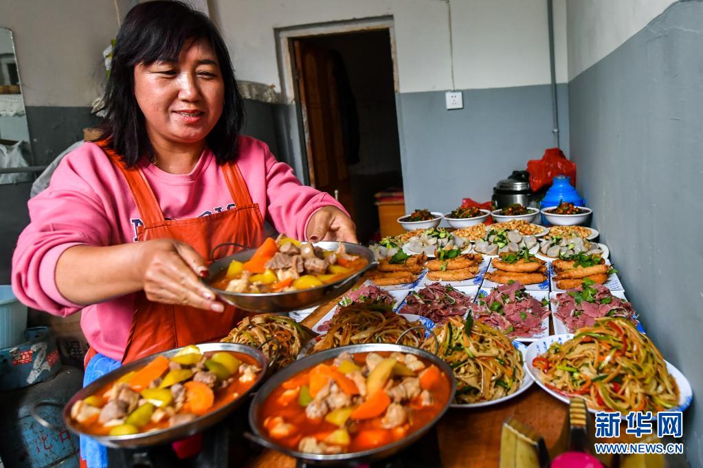 在胡在忠老人家中,厨师准备寿宴的菜品(4月24日摄)。新华社记者 曹阳 摄