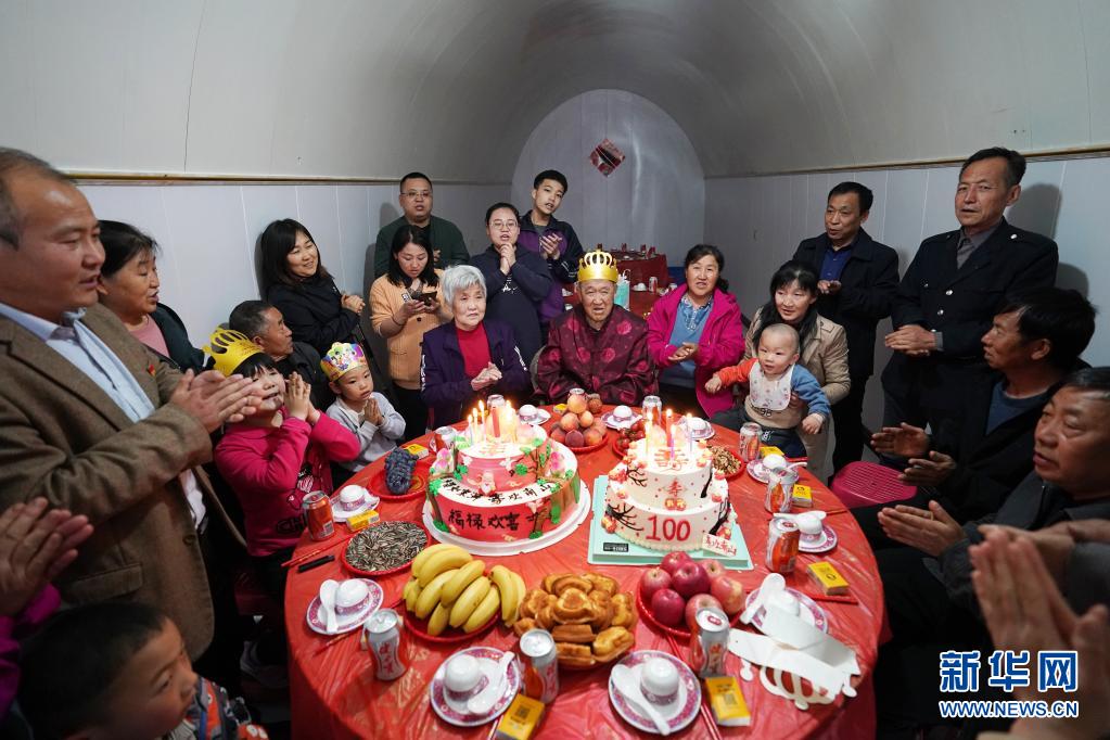 胡在忠的家人在生日宴上为老人唱生日歌(4月24日摄)。新华社记者 詹彦 摄
