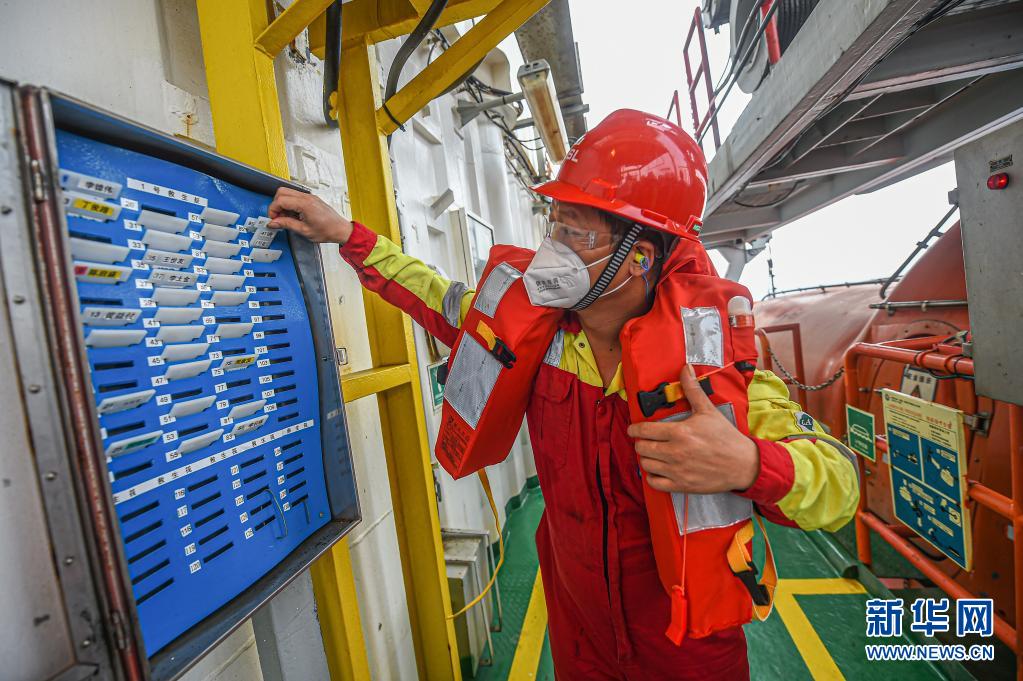 4月25日,工人在中国海油乐东15-1气田上进行应急演练。