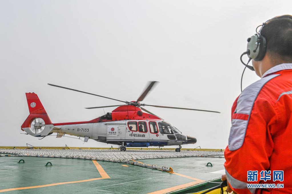 这是4月25日拍摄的中国海油乐东15-1气田直升机甲板。