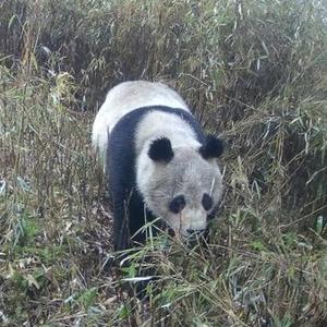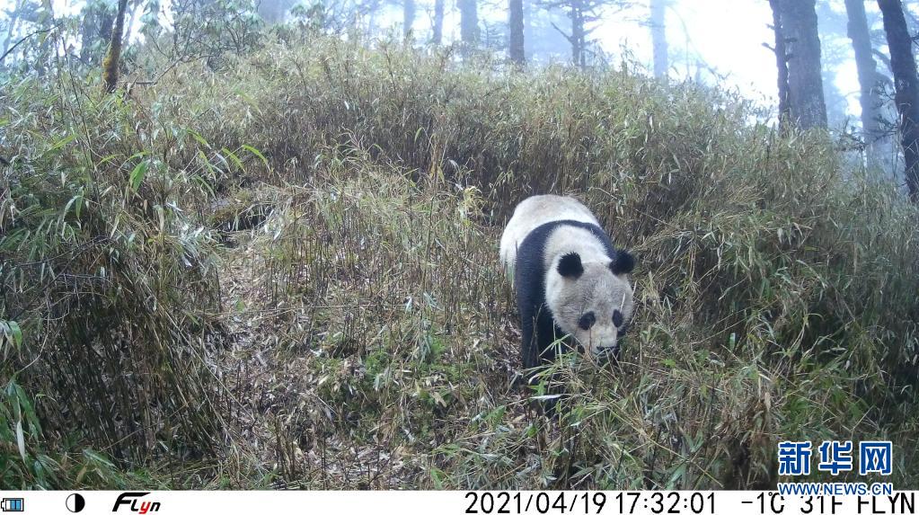 4月19日,卧龙牛头山海拔约3200米左右区域的红外触发相机拍下的野生大熊猫。新华社发(大熊猫国家公园管理局供图)