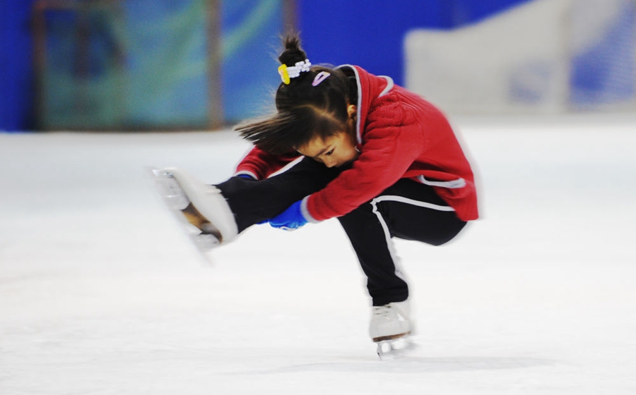 她五岁半开始学花样滑冰