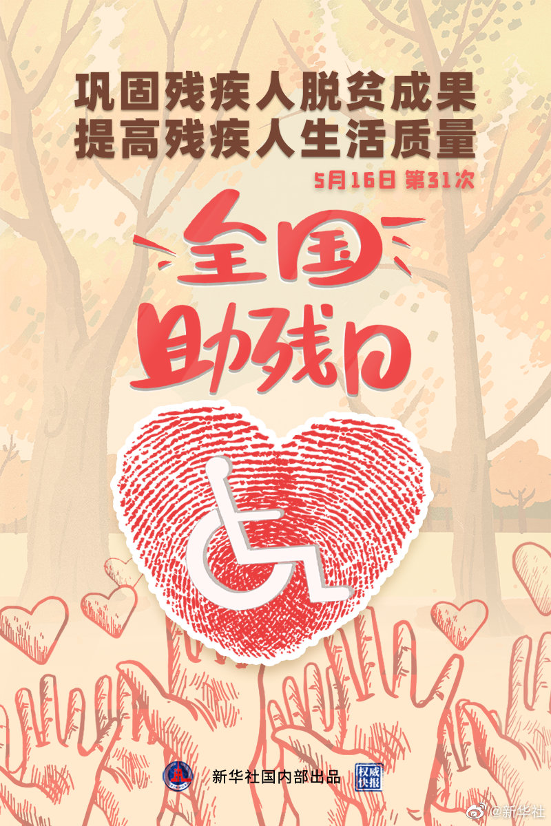 记者30日从中国残联获悉,今年5月16日是第三十一次全国助残日,本次助残日主题是“巩固残疾人脱贫成果,提高残疾人生活质量”。在全国助残日期间,各地将聚焦助残日主题,开展多种形式的扶残助残活动,积极为残疾人办实事。(记者高蕾,海报设计杨轶群)