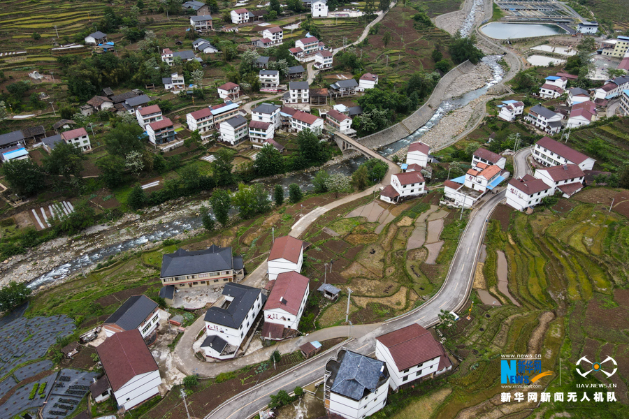 航拍正在建设中的三建乡新场镇,今后三建乡将打造成为一个高品质的旅游服务小镇。新华网 耿骏宇 摄