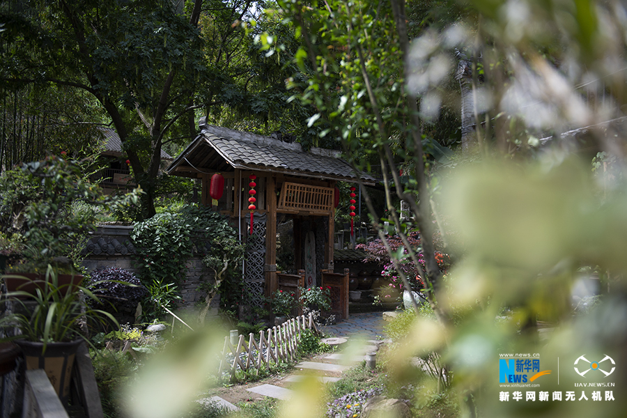 航拍三建乡绿春坝村保家楼古村落。经过对旧房全面整治改造,传统古村落被打造成为美丽乡村示范点,曾经破旧的院落散发出勃勃生机。新华网 耿骏宇 摄
