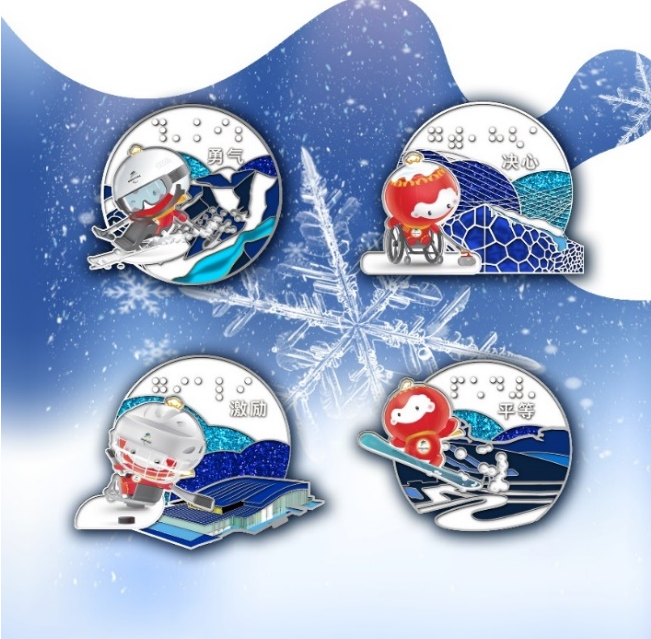 相关负责人介绍,残奥价值观徽章以北京冬残奥会吉祥物“雪容融”运动造型、项目对应的竞赛场馆和残奥价值观的汉字和盲文为设计元素,融合金粉漆、玻璃漆等多种工艺,使徽章更加闪耀、富有质感。北京冬残奥会吉祥物运动造型徽章、磁吸书签和贴纸套装以“雪容融”的运动造型为设计元素,通过多种形式和载体宣传展示北京冬残奥会的运动项目。