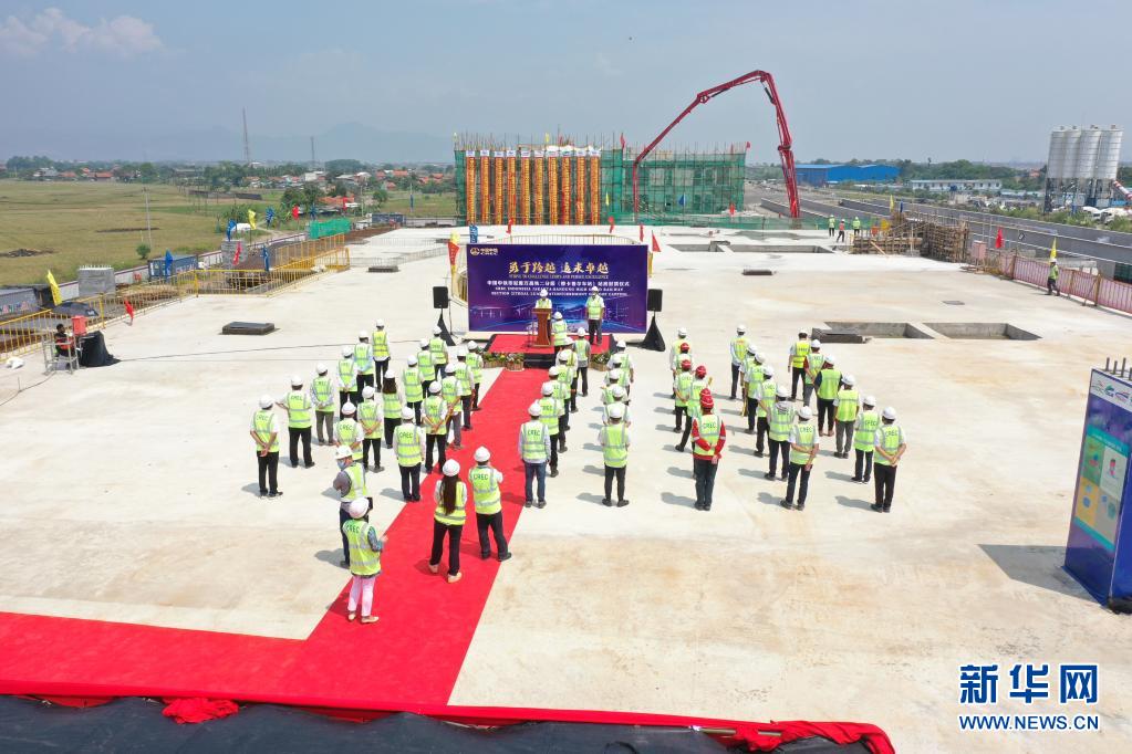 这是4月30日拍摄的印度尼西亚雅万高铁德卡鲁尔车站站房主体结构封顶仪式。新华社发
