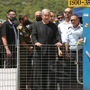 4月30日,以色列总理内塔尼亚胡(前中)视察以北部梅龙山踩踏事故现场。新华社/基尼图片社