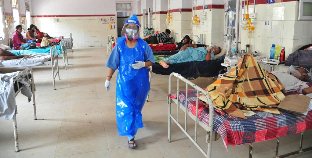 4月30日,新冠患者在印度班加罗尔的一所医院接受治疗。印度卫生部当日公布的数据显示,该国较前一日新增新冠确诊病例386452例,累计18762976例;新增死亡3498例,累计208330例。印度单日新增确诊病例已连续9天超过30万例。(新华社发)