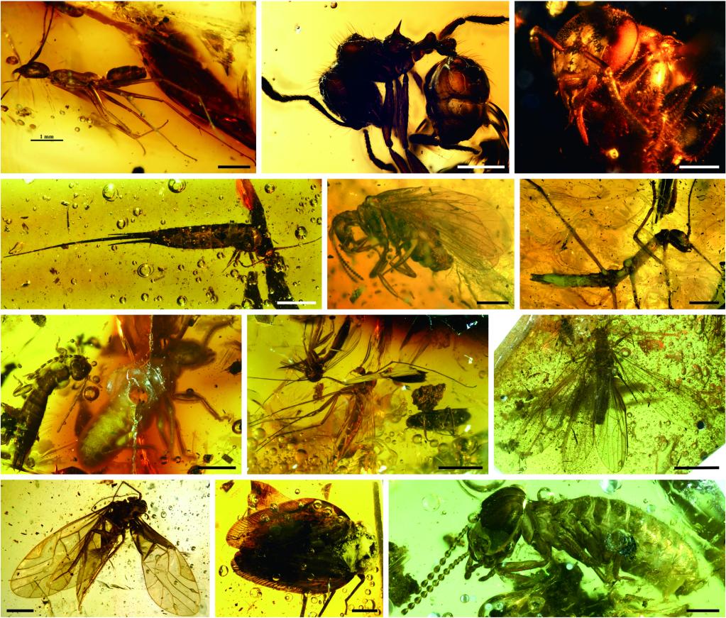 漳浦琥珀中的各种昆虫。中国科学院南京地质古生物研究所供图。