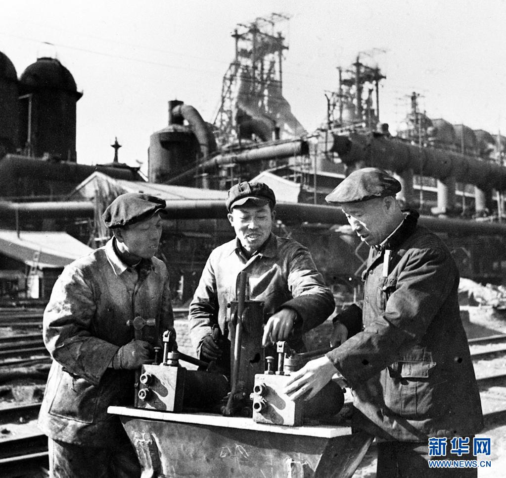 1948年,饱经战争摧残、几近成为废墟的鞍山钢铁厂回到人民手中,党中央要求迅速恢复生产。老工人孟泰勇敢站了出来,带领工友献交器材、刨开冰雪收集废旧零件,硬是在物资极度匮乏、国外专家认为不可能的情况下,于1949年6月7日炼出了第一炉铁水。而炼铁厂修复3座高炉用的材料,没花国家一分钱。