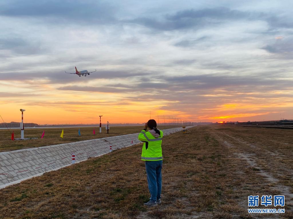鸟击防范员辛晓芳在观察航班起落情况(资料照片)。