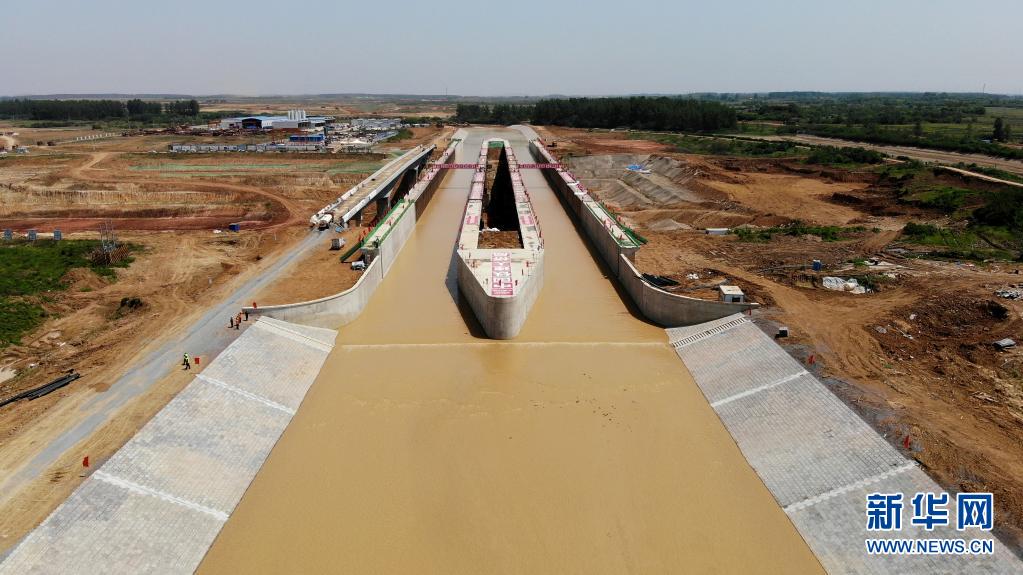 当日,由中铁四局、中铁建大桥局负责施工的引江济淮淠河总干渠渡槽充水试验成功,正式通水通航。渡槽总长350米,其中钢结构渡槽246米,主跨跨度达到110米,是目前世界上跨度最大的通水通航钢结构渡槽,也是引江济淮工程重要节点性工程。据了解,淠河总干渠比引江济淮航道高出30多米,通过架设渡槽,淠河水从引江济淮运河“跨过”,形成一座“河上有河”可通水行船的“水桥”。