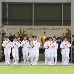 3月25日,东京奥运会火炬传递在日本福岛国家足球训练中心拉开帷幕,在2011年德国女足世界杯中夺冠的日本女子国家队部分成员成为第一棒火炬手。(新华社记者杜潇逸摄)