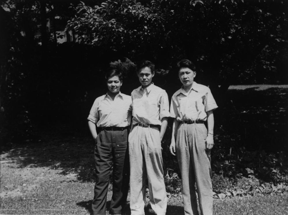 1947年,朱光亚同志在美国密执安大学研究生院学习时留影(左起李政道、杨振宁、朱光亚)。新华社发