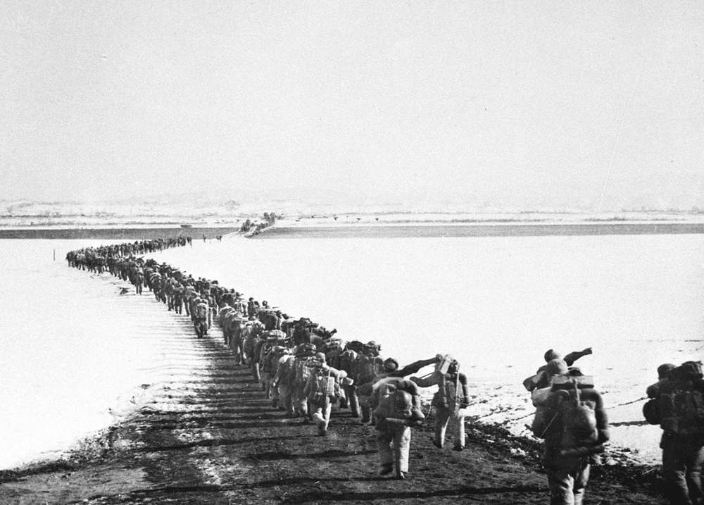 1950年10月25日,中国人民志愿军跨过鸭绿江与朝鲜民主主义人民共和国军民并肩战斗,抗击美国侵略军。新华社发