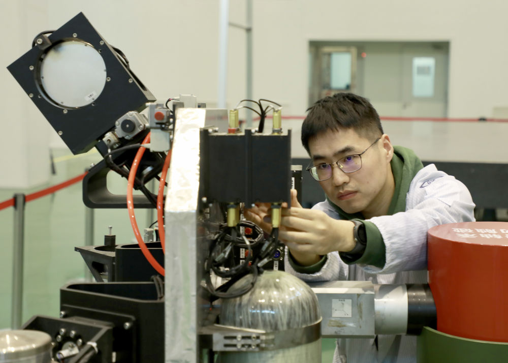 ↑2020年11月9日,哈尔滨工业大学航天学院博士研究生吴凡调试微纳卫星实验设备。1993年出生的吴凡从小对航天知识有着浓厚兴趣,他所在的哈工大紫丁香学生微纳卫星团队,被称为“中国最年轻的航天力量”。