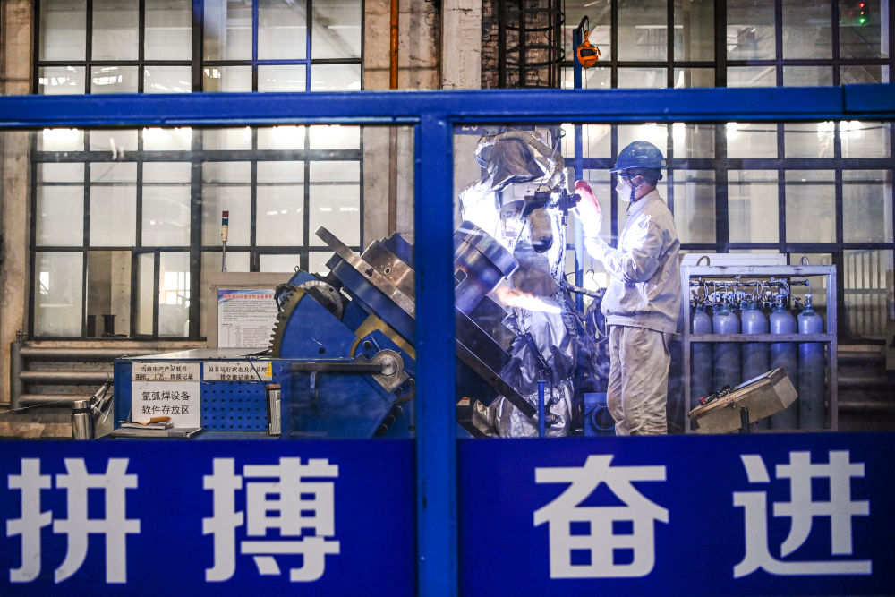 ↑2021年4月15日,哈电集团哈尔滨汽轮机厂有限责任公司电焊工孙柏慧在进行电焊作业。“90后”孙柏慧曾获“全国青年岗位能手标兵”“黑龙江省杰出青年岗位能手”等称号,他在焊接技术研究及创新创效方面取得成果,为企业节约成本近千万元。