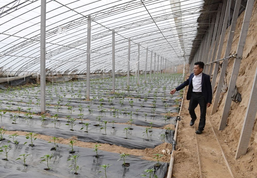 ↑ 2020年10月20日,耿付征在自己租种的扶贫大棚内介绍尖椒生长情况。“90后”小伙耿付征自小因脊柱弯曲无法干重活,2018年起通过改良自家老棚和额外租种扶贫大棚提高了收入。