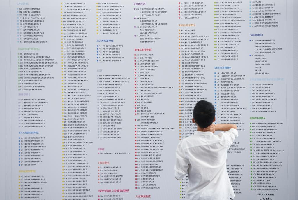 4月24日,在中国国际人才交流大会“精英天下”中高级人才招聘会上,应聘者在查看企业名录。新华社记者 毛思倩 摄