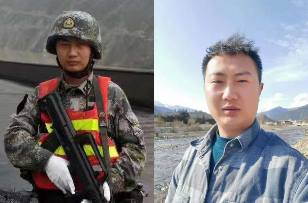 左图为在军营时的吴炳辰,右图是在双湖县工作后的他。(拼版照片,受访者提供)