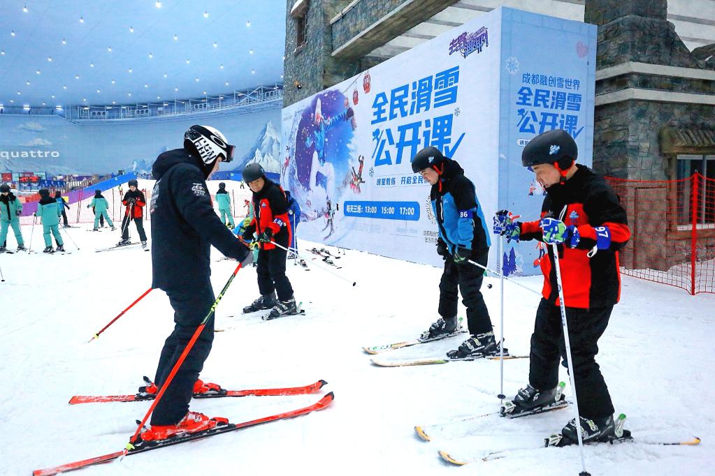 “五一”假期,成都融创文旅城滑雪公开课广受年轻人欢迎(受访者供图)
