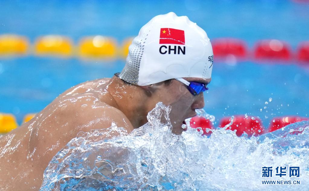 5月6日,浙江队选手汪顺在比赛中。当日,2021年全国游泳冠军赛暨东京奥运会选拔赛男子200米个人混合泳决赛在山东青岛举行,浙江队选手汪顺获得冠军。新华社记者 许畅 摄