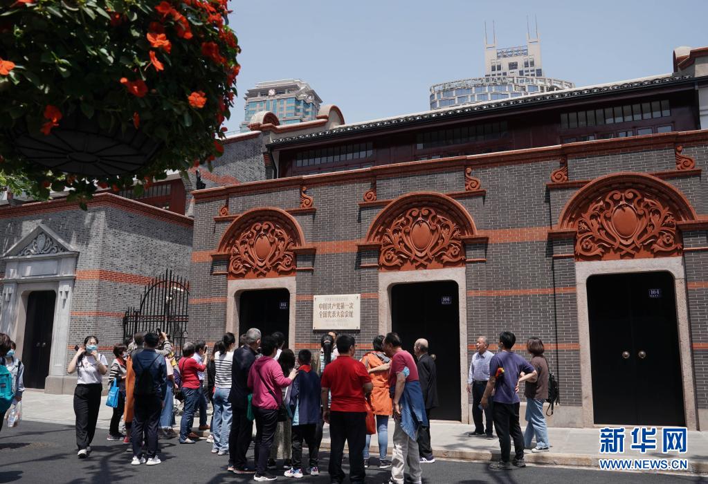游客在位于上海的中共一大会址参观留影(5月1日摄)。新华社记者 刘颖 摄