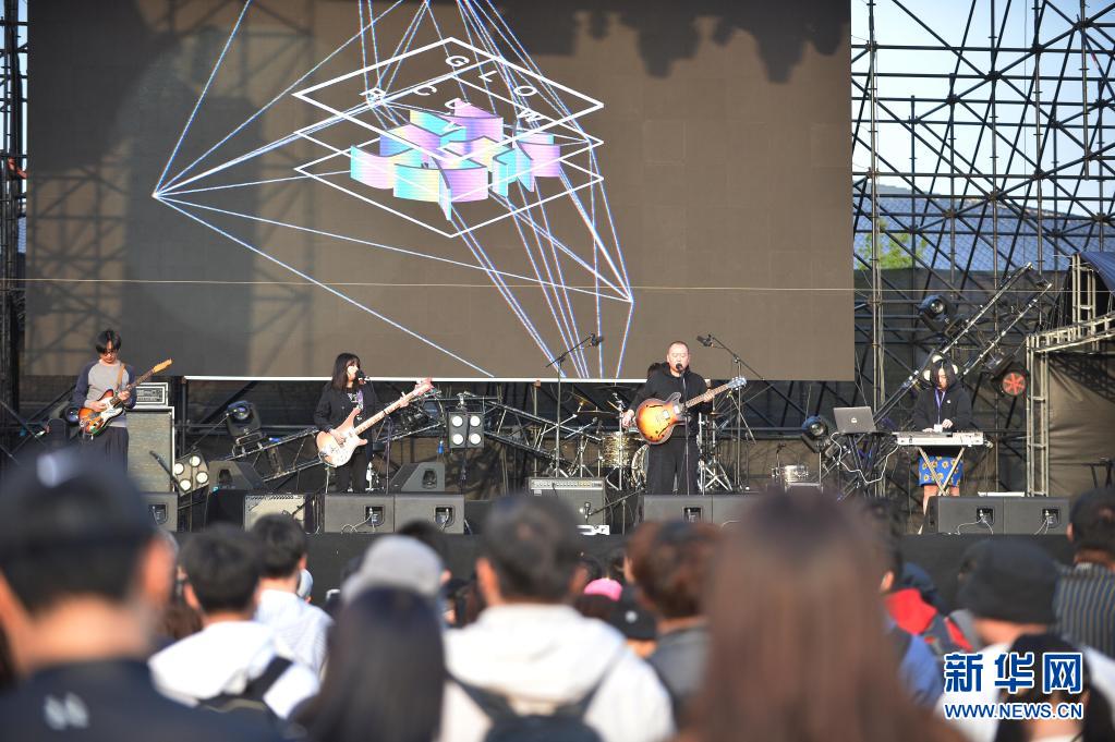 观众在北京草莓音乐节上观看发光曲线乐队现场表演(5月2日摄)。新华社记者 肖潇 摄