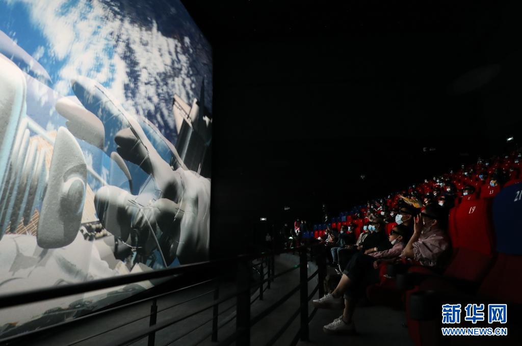 游客在上海科技馆影院内观看立体巨幕电影《国际空间站》(5月2日摄)。新华社记者 方喆 摄