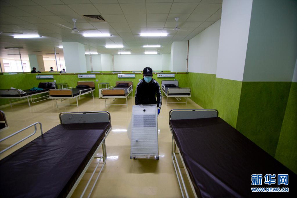 5月5日,尼泊尔志愿者在首都加德满都参与改造隔离中心的工作。新华社发(苏拉韦·什雷斯塔摄)