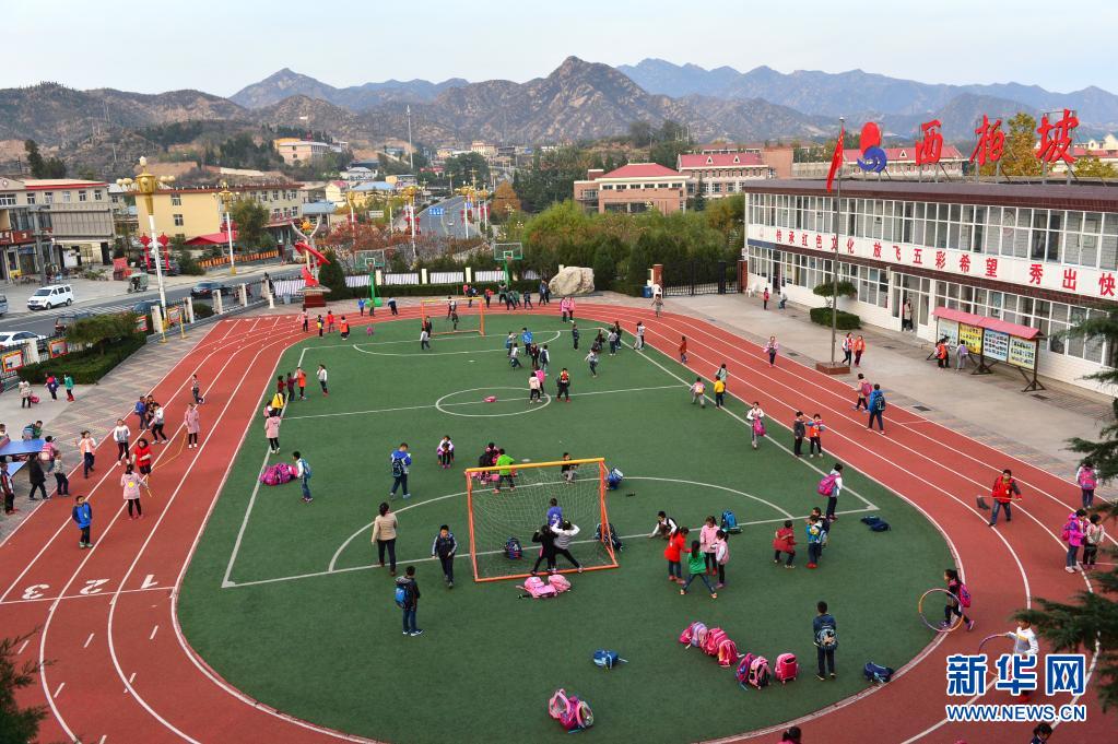 河北省平山县西柏坡希望小学的学生在操场上玩耍(2017年11月8日摄)。新华社发(张震 摄)