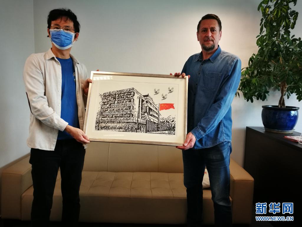 这幅作品的作者名叫耶兹迪米尔·米洛舍维奇。他郑重地将这幅装裱好的画作赠送给新华社萨拉热窝分社,也将一个波黑人的真挚情谊献给中国。