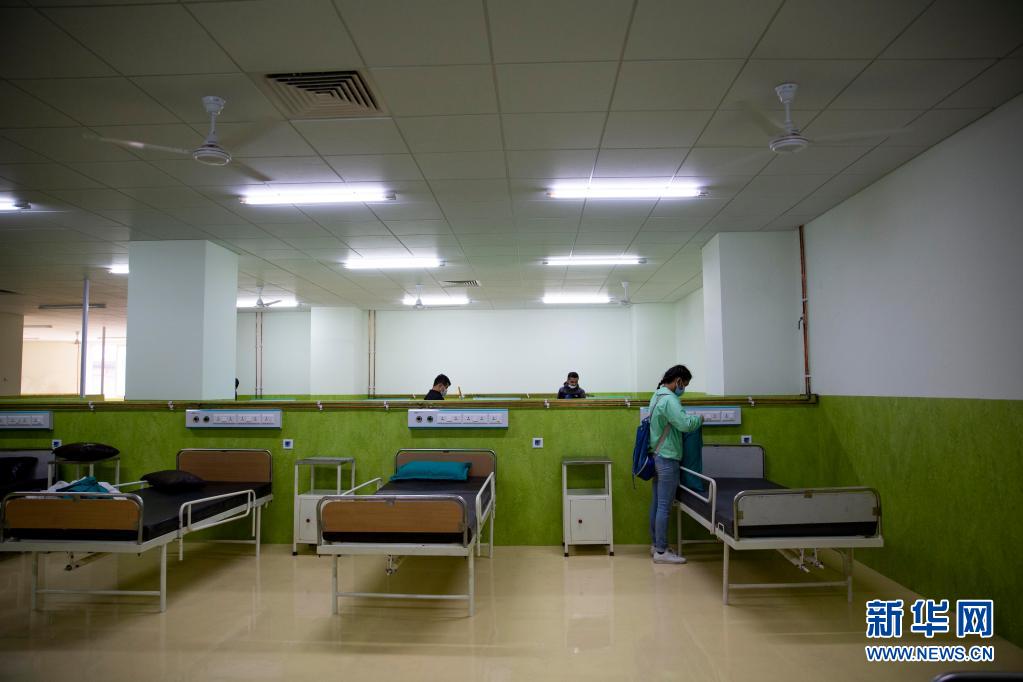 5月5日,尼泊尔志愿者在首都加德满都参与改造隔离中心的工作。新华社发(苏拉韦·什雷斯塔 摄)