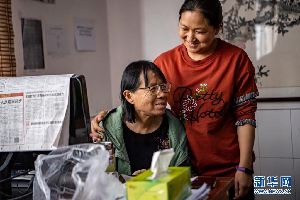 在华坪儿童福利院长大的雷秋凤(右)来探望张桂梅(3月25日摄)。新华社记者 江文耀 摄