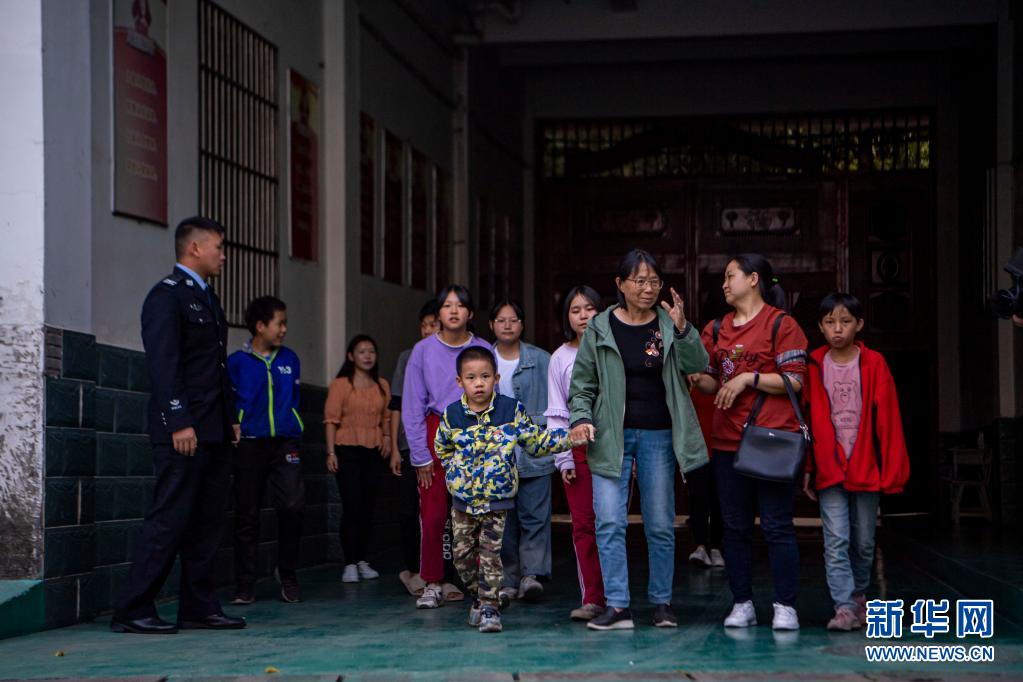 张桂梅(右三)回到华坪儿童福利院(3月25日摄)。新华社记者 江文耀 摄