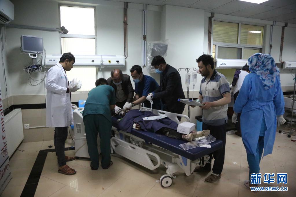 5月8日,在阿富汗喀布尔,一名伤者在医院接受治疗。新华社发(赛义德·莫明扎达摄)