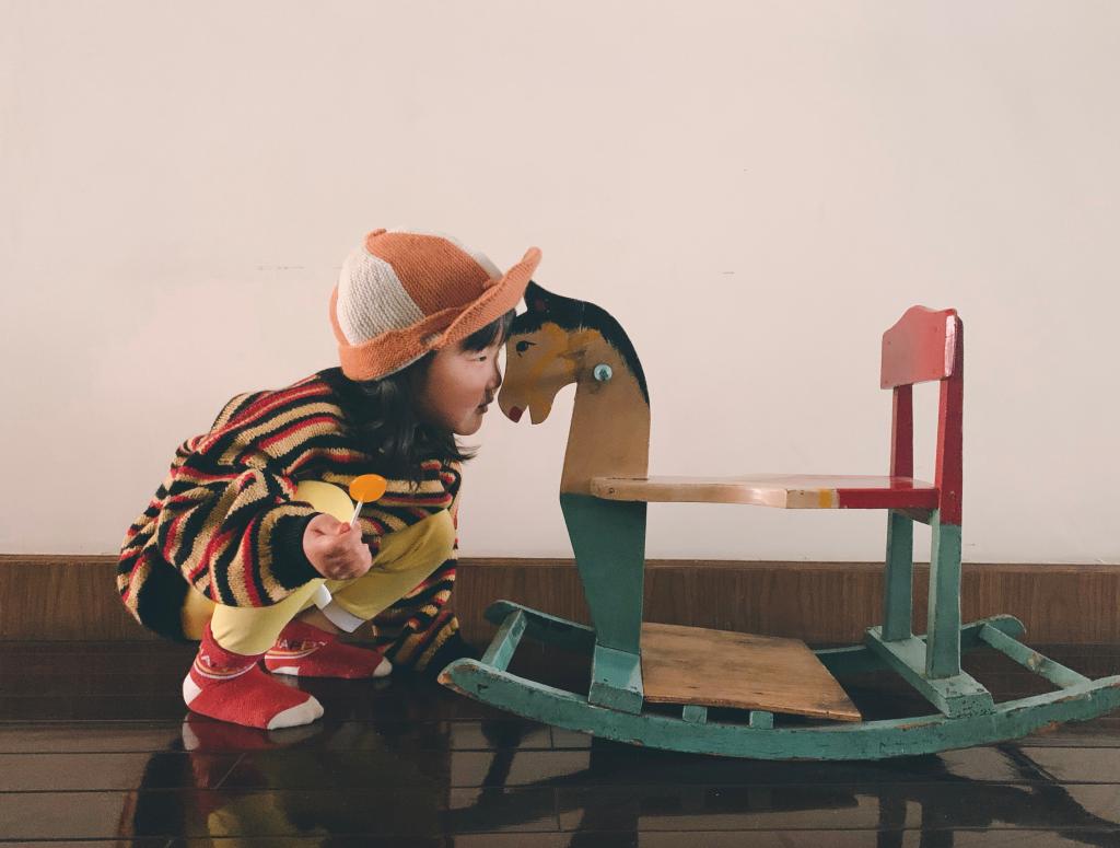 ↑承载着近70年历史的小木马如今成为小孙女心爱的玩伴。(受访者供图)