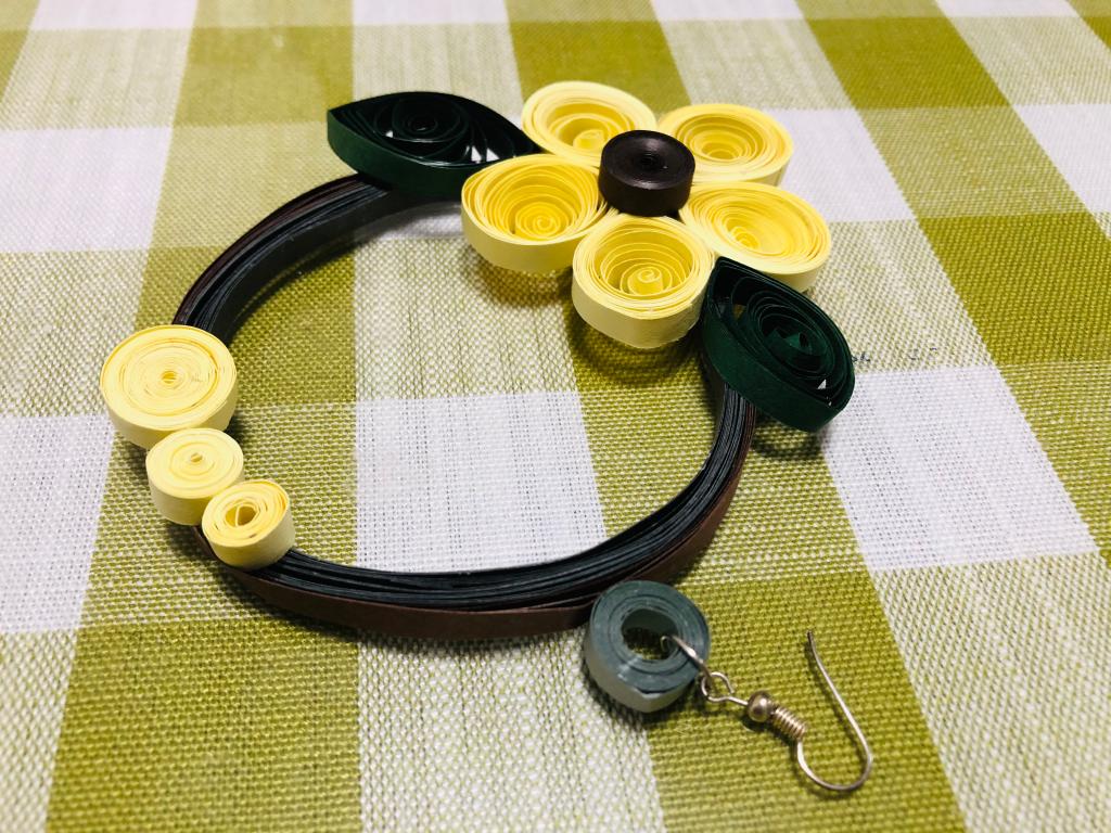 ↑女儿用衍纸为胡玲做的耳环。(受访者供图)