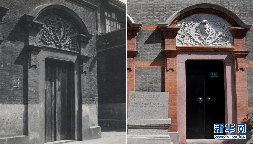 拼版照片:左图为中共中央军委机关旧址的老照片;右图为5月10日对外开放的中共中央军委机关旧址纪念馆。 新华社记者 刘颖 摄