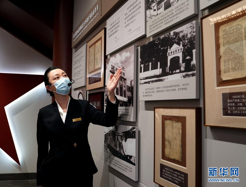 5月8日,在中共中央军委机关旧址纪念馆,讲解员在介绍展品。 新华社记者 刘颖 摄