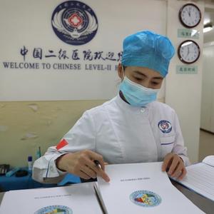 唐晓丹在进行日常护理工作统计(5月10日摄)。新华社发(黄松 摄)