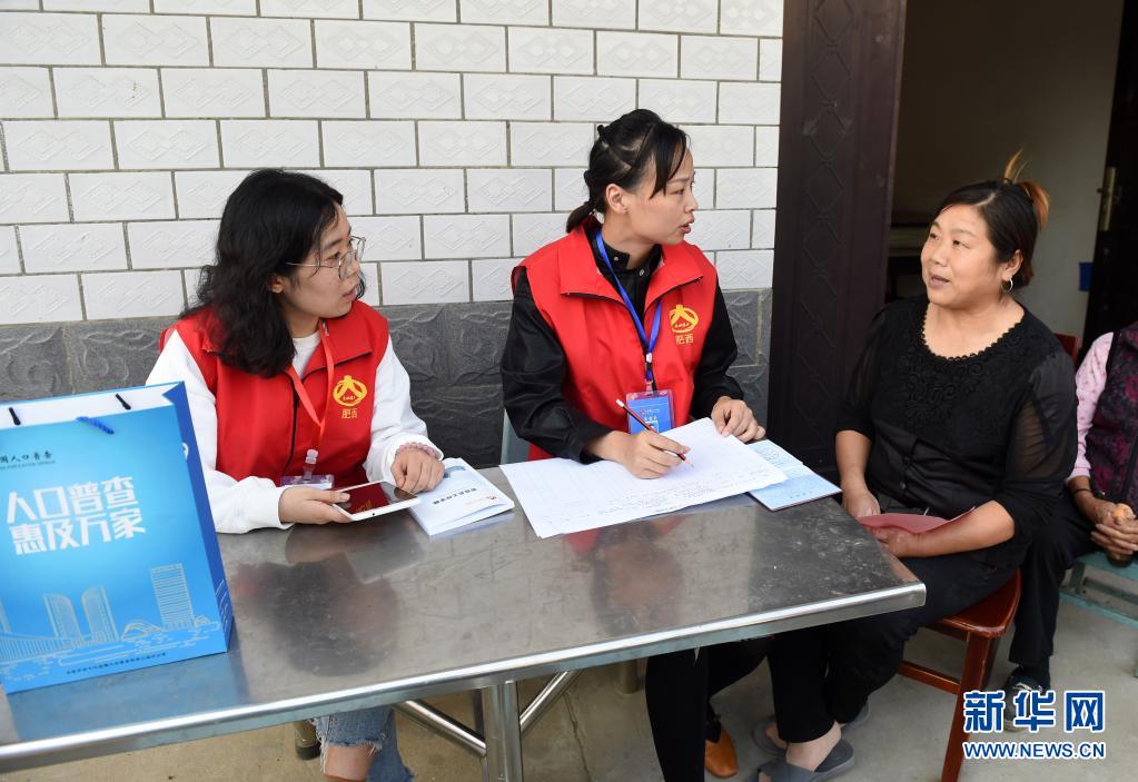2020年10月11日,安徽省合肥市肥西县花岗镇人口普查员、普查指导员在居民家中进行信息摸底。新华社记者 刘军喜 摄