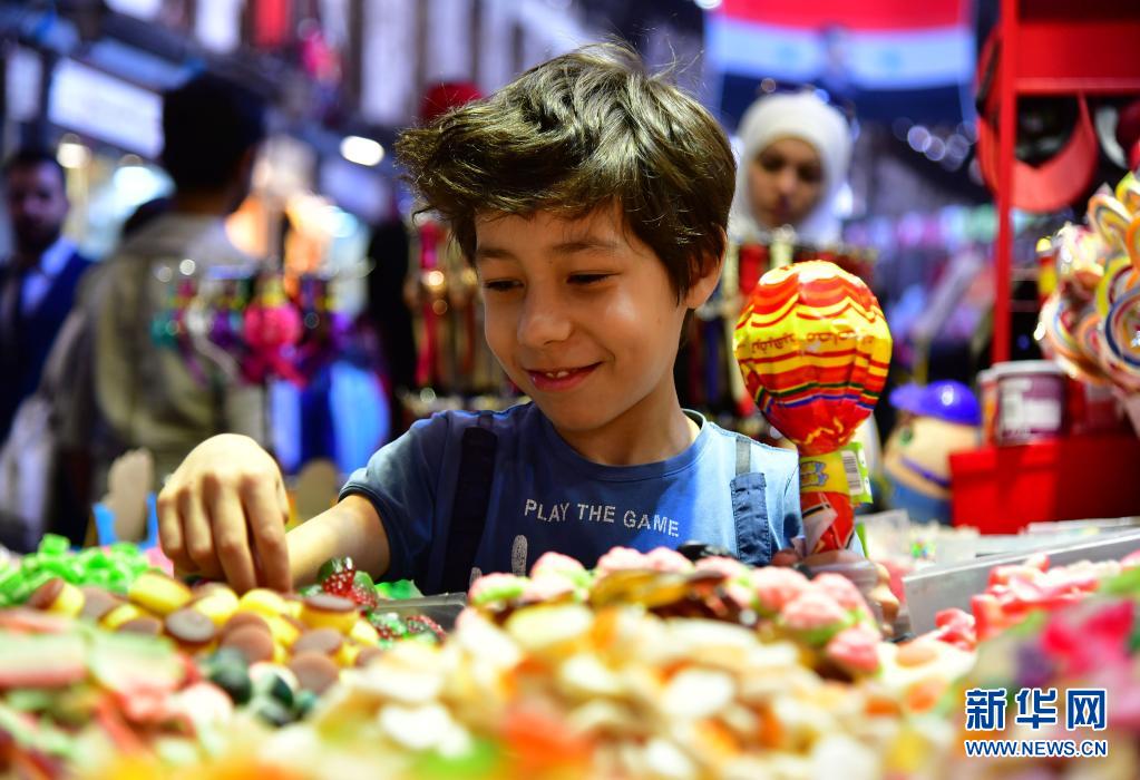 5月11日,一名儿童在叙利亚首都大马士革的市场上挑选糖果。