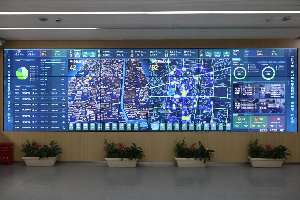 位于上海市静安区的“一网统管”智慧大屏。新华社记者 王翔 摄